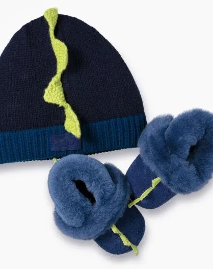 Coffret bonnet & bottines en Peau de Mouton Dydo bleu