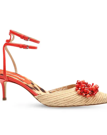 Sling-Back Charlize en Cuir Vernis corails