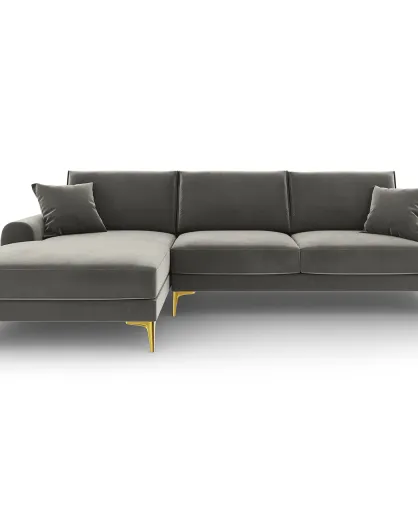 Canapé d'angle gauche velours madara gris - 254x182x90 cm