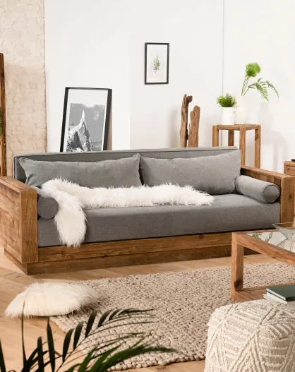Canapé bois Pin recyclé 3 places Sandy bois/gris - 224x81.5x80 cm