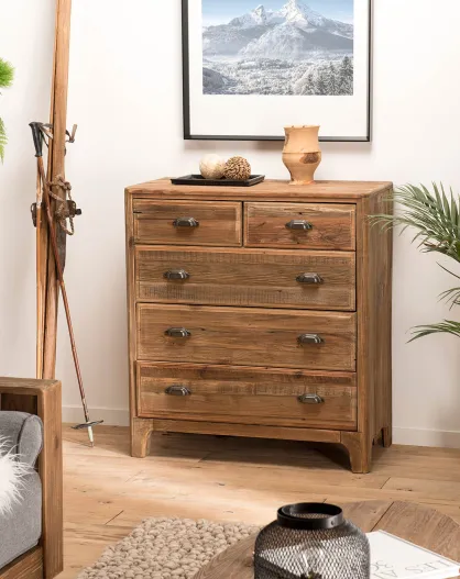 Meuble chiffonnier 5 tiroirs Sandy bois naturel - 90x48x100 cm
