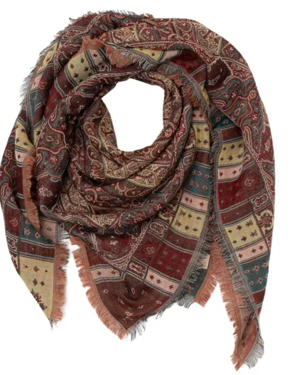 Étole en Laine Veneto bordeaux/kaki - 130x130 cm