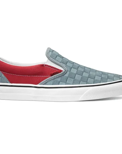 Slip-On en Velours de Cuir & Toile Classic gris/rouge
