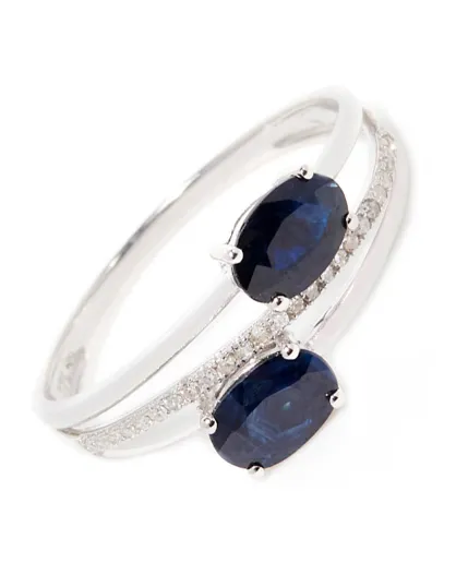 Bague Duo Diamant 0.09 ct & Saphir 1.36 ct or blanc