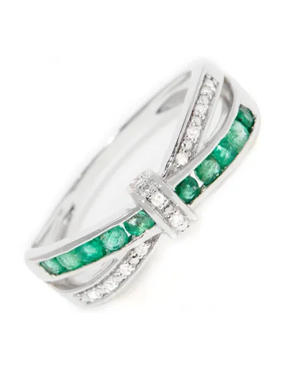 Bague Starky Diamant 0.045 ct & Emeraude 0.045 ct or blanc