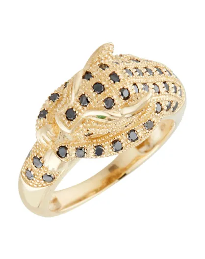 Bague Panthère Noire Diamant noir 0.556 ct & Emeraude 0.06 ct or jaune