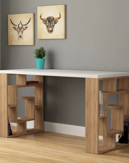 Bureau Maze chêne/blanc - 60x140x75 cm
