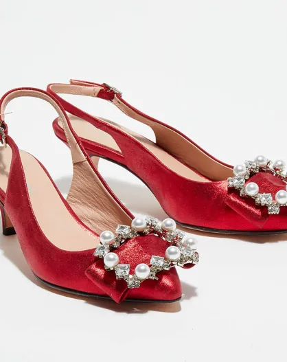 Slingbacks en Cuir métallisé Milia rouges - Talon 6 cm