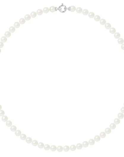 Collier Rang en Or blanc & Perles d'Eau Douce rondes blanc naturel Ø 6-7 mm