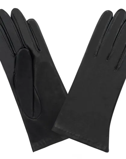 Gants en Cuir d'Agneau doublure Soie noirs
