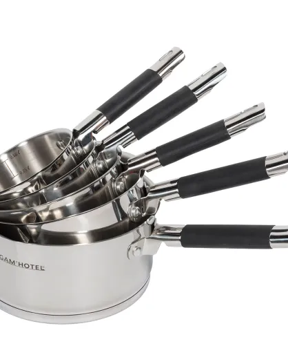 5 Casseroles induction inox argenté/noir - D.12/14/16/18/20 cm