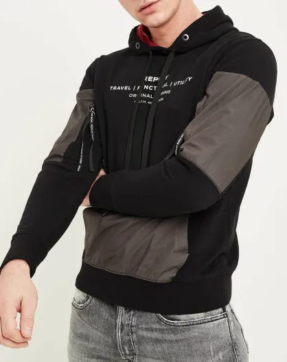 Sweat bi-matière Utility noir/gris