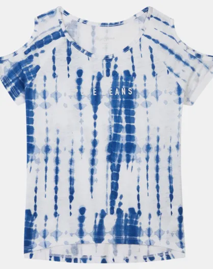 T-Shirt Tie & Die Manila épaule ouverte bleu/blanc