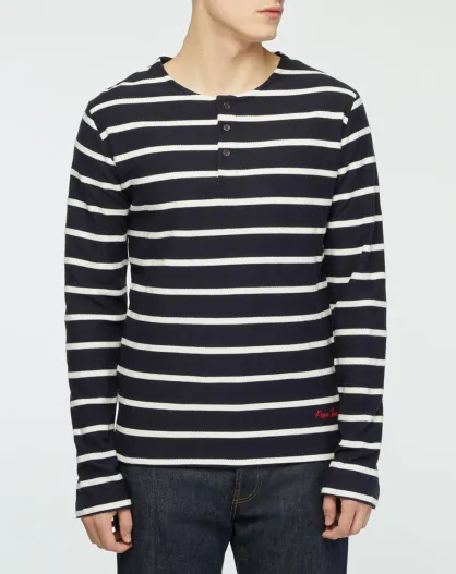Pull tunisien Darek rayé bleu marine