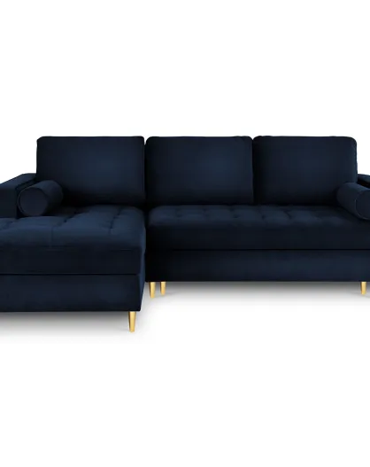 Canapé d'angle gauche velours convertible avec coffre de rangement santo 5 places bleu roi - 240x175x96 cm