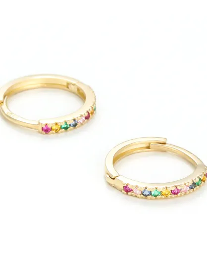 Boucles d'oreilles Créoles Zircones multicolores or jaune