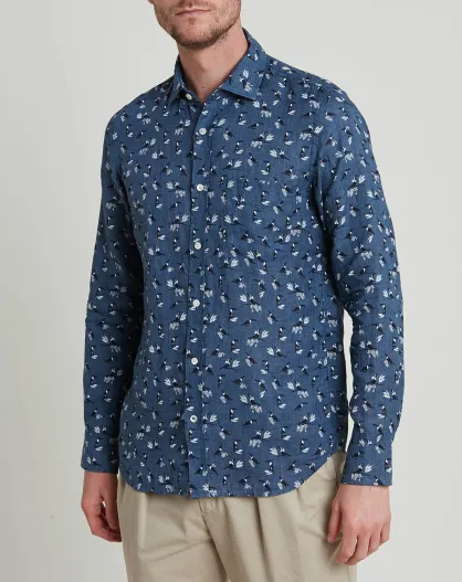 Chemise 100% Lin Slim Storm imprimée bleu/blanc