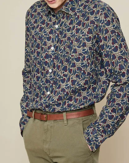 Chemise 100% Lin Slim Storm camouflage kaki/bordeaux/marine