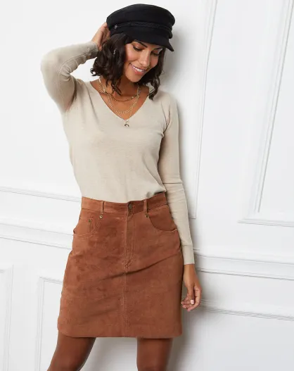 Pull Romane à Col V beige
