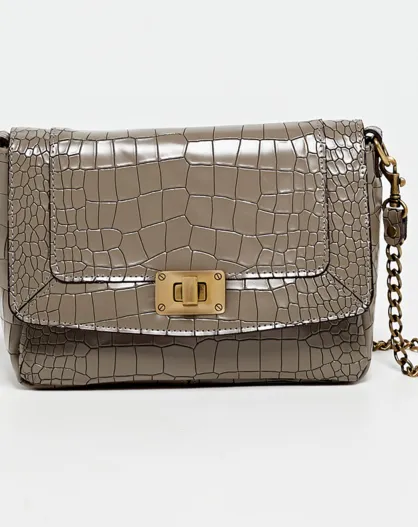 Sac bandoulière en Cuir motif python Gaby taupe - 20x7x14.5 cm