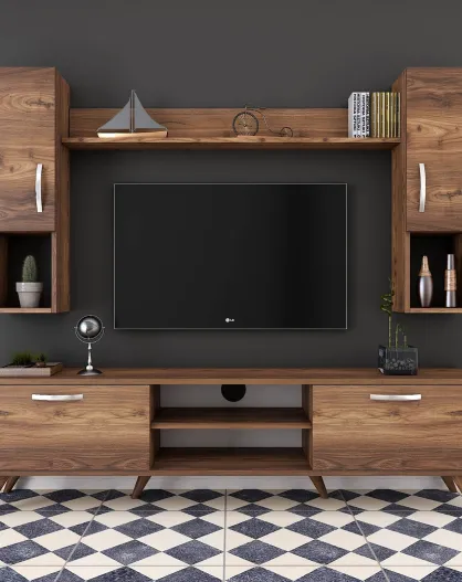 Meuble TV avec étagère M27 noyer - 180x48.6x35 cm