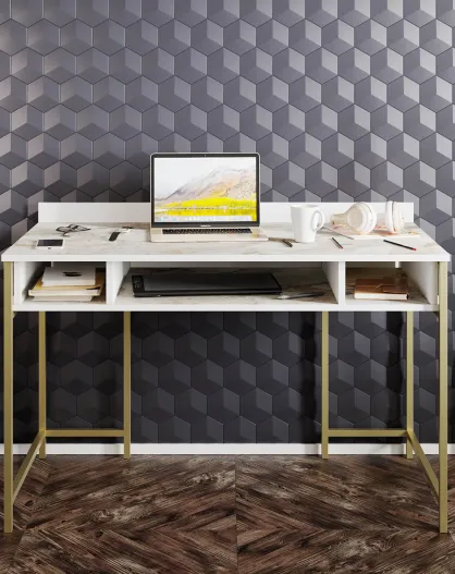Bureau Tumata doré/blanc - 119.5x62x75.2 cm