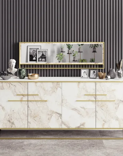 Console & Miroir Polka Aynali doré/blanc - 179.9x75x47.3 cm