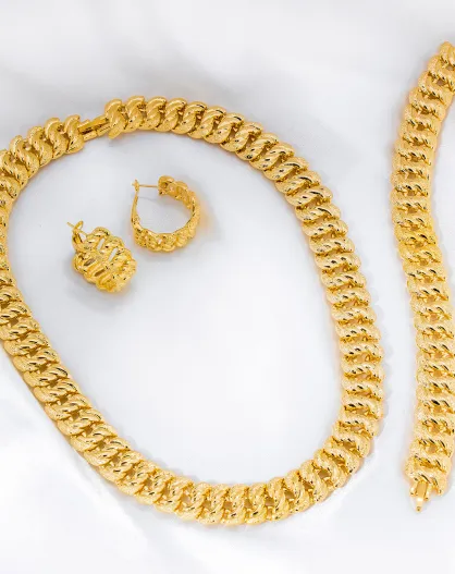 Parure Chains Collier, Bracelet & Boucles d'oreilles dorée