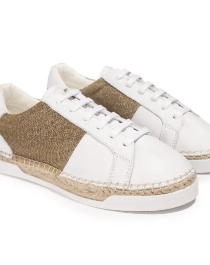 Baskets espadrilles en Cuir & Lurex Louisa blanc/doré