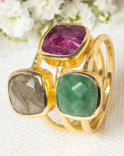 Bague Elsa Aventurine, Labradorite & Rubis en laiton doré