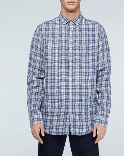 Chemise droite 100% Lin Lintaro à carreaux bleue