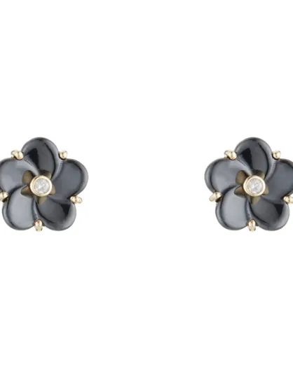 Boucles d'oreilles Fleur Noire Diamants 0.042 ct & Céramique or jaune