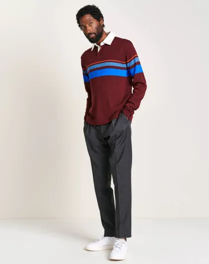 Pull 100% Laine Dapfil bordeaux/bleu