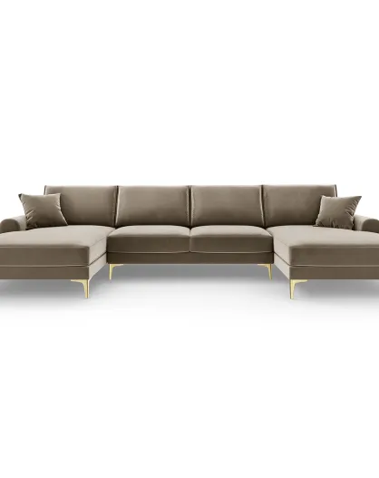 Canapé Panoramique Velvet 6 places Madara beige - 334x182x90 cm