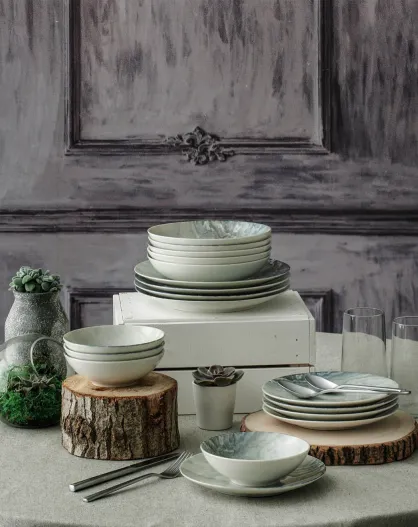 Service de table en Porcelaine dégradé blanc/gris/bleu - 24 pièces