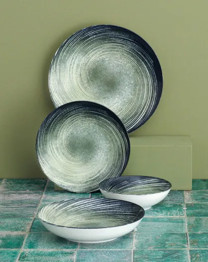 Service de table en Porcelaine crème/vert/noir - 24 pièces