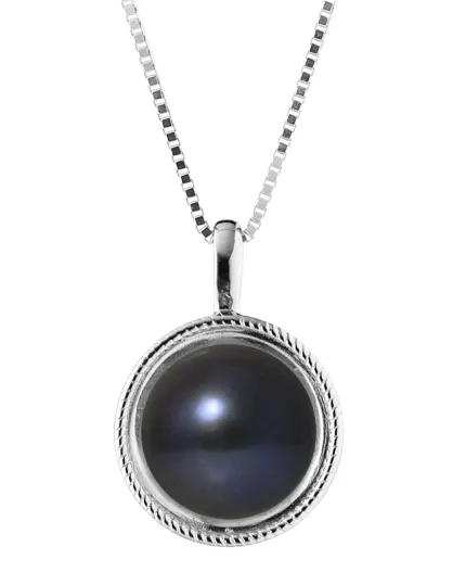 Collier Argent rhodié Perle d'Eau Douce bouton noire