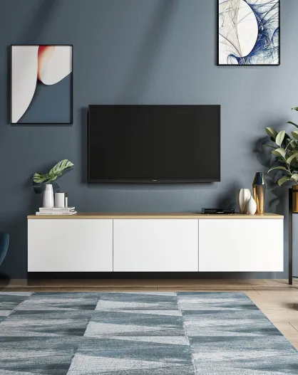 Meuble TV Neon blanc/chêne - 160x32x35 cm