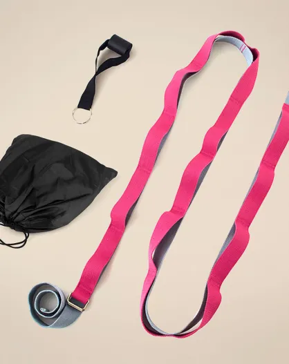 Sangle de Yoga avec boucle de prise multiple rose/gris