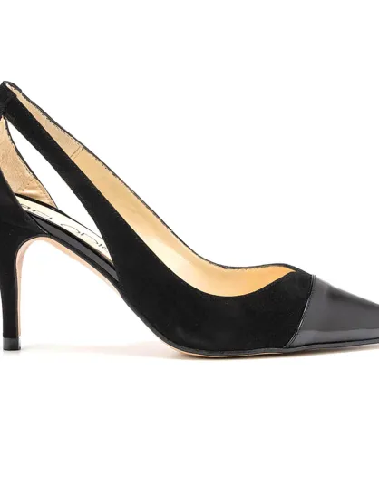 Escarpins en Velours de Cui & Cuir Claire noirs - Talon 7 cm