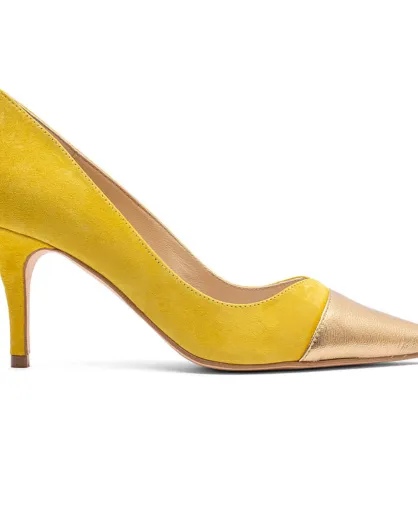 Escarpins en Velours de Cuir & Cuir Monica doré/jaune - Talon 7 cm
