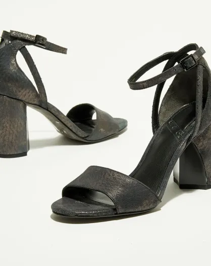 Sandales Nudist Hollywood pailletées noir/argenté - Talon 14,5 cm