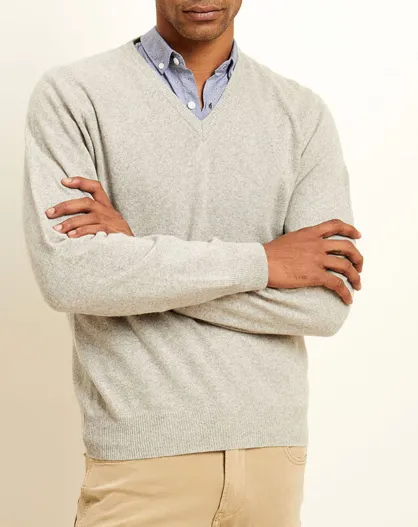 Pull 100% Cachemire col V gris clair