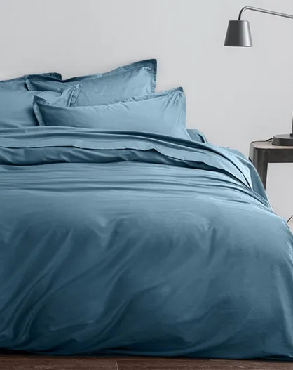 Parure housse de couette 100% Satin de Coton bleue