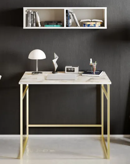 Bureau + Etagère murale Gama blanc/doré - 90x60x75 cm