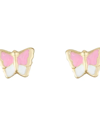 Boucles d'oreilles enfant Papillon Amoureux Email or jaune