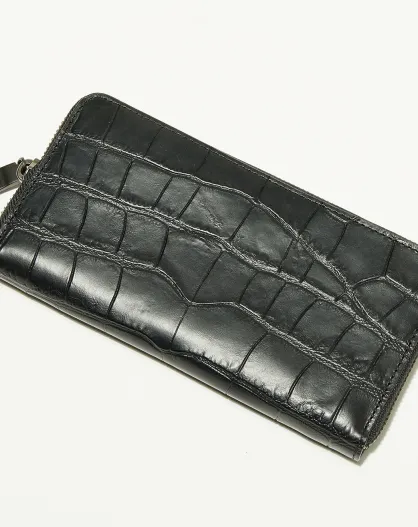 Compagnon Homme en Cuir croco Accordion noir - 9.9x18.9 cm