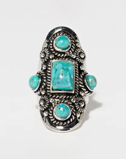 Bague Xochipilli en Argent massif & Turquoise 4.5 ct