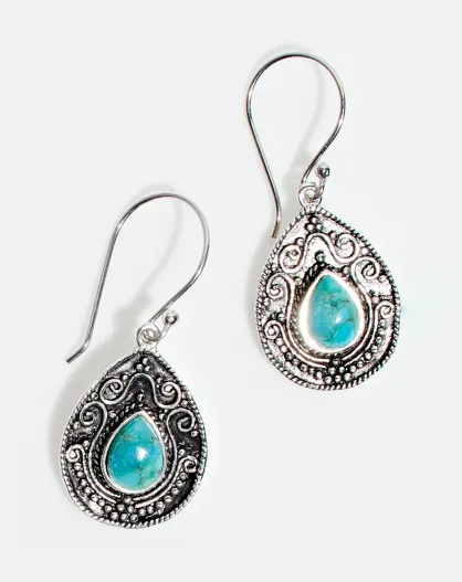 Boucles d'oreilles Xocolatl en Argent massif & Turquoise 1.8 ct