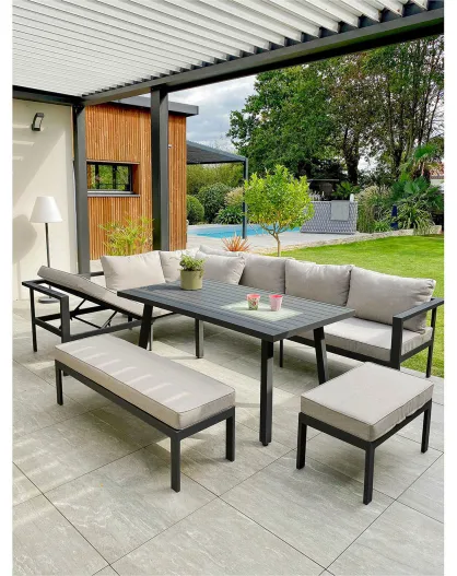 Ensemble de jardin Cayenne 7 places en aluminium gris anthracite